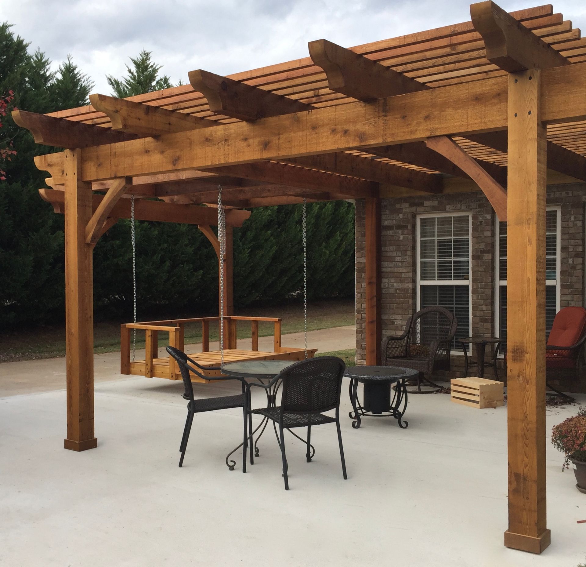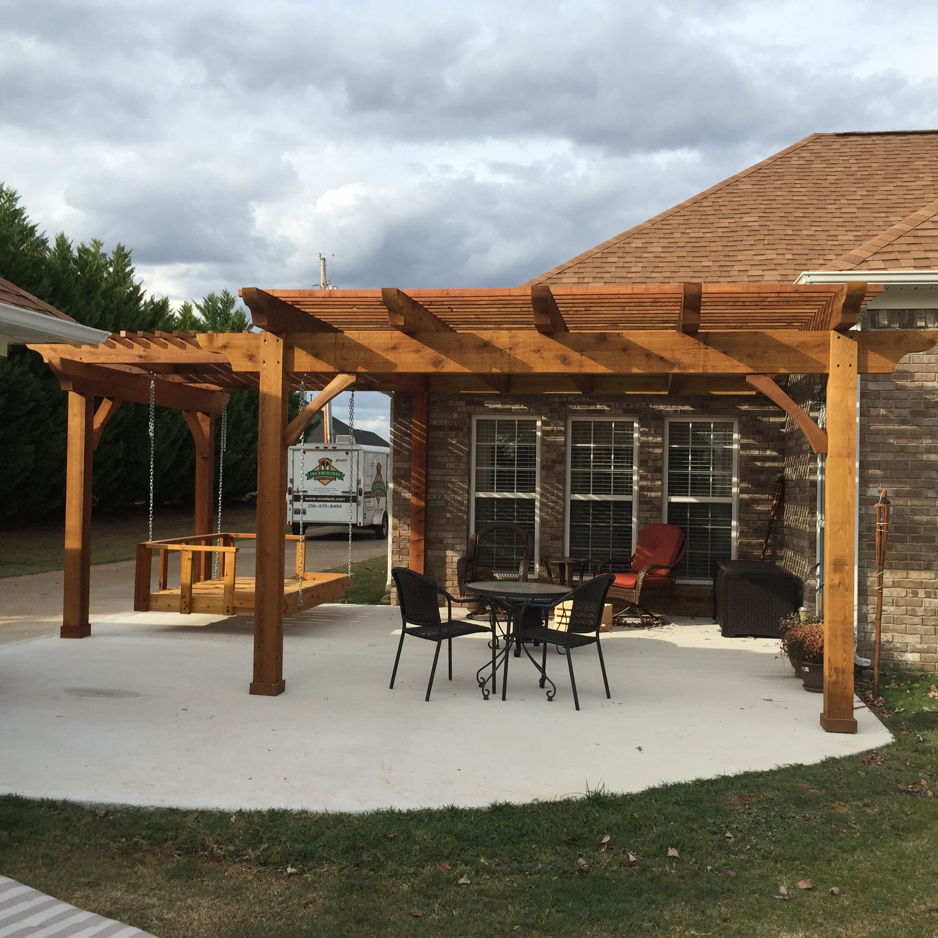 A beautifully crafted swing brings a playful touch to your pergola. It's the perfect way to relax and enjoy the tranquility of your outdoor haven in Madison, Alabama.